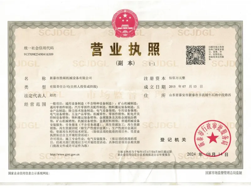ООО Синьтай Шэншо Машиностроительное Оборудование было основано в 2015 году с уставным капиталом в пять миллионов юаней. Расположенная в западной части среднего участка ул. Нюшилу, центральный участок, западная сторона, пос. Янлю, г. Синьтай, г. Таянь, пров. Шаньдун, компания имеет удобное транспортное сообщение и выгодное расположение рядом с железной дорогой Пекин-Шанхай, скоростными автомагистралями Пекин-Фучжоу и Пекин-Шанхай, а также в непосредственной близости от национальной автомагистрали 104. Компания специализируется на обработке, производстве и восстановлении цилиндров, опор, домкратов и компонентов для угледобывающей техники. Компания располагает более чем 30 обрабатывающими установками, включая центры обработки с ЧПУ, токарные станки с ЧПУ, расточные станки с ЧПУ, фрезерные станки, сверлильные станки и установки для термообработки. Компания имеет лабораторию по анализу металлических материалов, оснащенную различными крупногабаритными прецизионными испытательными приборами, включая более 20 комплектов испытательного оборудования, таких как сканирующие электронные микроскопы с энергодисперсионными спектрометрами, системы испытания твердости и машины для испытания давлением. Передовые производственные процессы и комплексные методы испытаний обеспечивают надежное качество продукции.